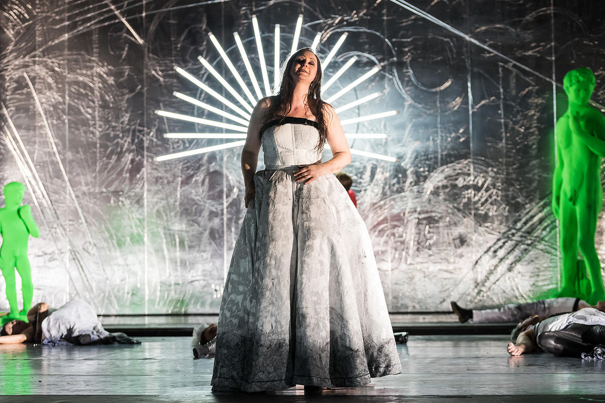 Den Höhepunkt vor der Pause schaffte eine Sängerin, die in seiner Amtszeit als Intendant das „Laufen“ gelernt hatte und zu einer Bühnenpersönlichkeit ersten Ranges wurde, Martina Rüping. Sie sang anrührend die Arie „Guardian angels, oh, protect me“ – Schutzengel, oh beschütze mich – aus „The Triumph of Time and Truth“.