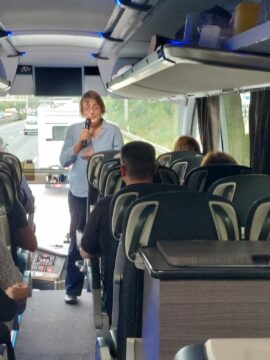 "Nicht in vollen Zügen", aber im bequemen Reisebus waren wir zwar lange unterwegs, aber nie gelangweilt. Denn schon die Anreise bot Zeit für anregende Gespräche von über 20 halleschen Opern-Enthusiasten.